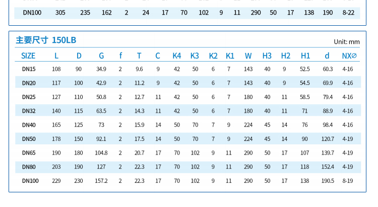 公稱通徑:DN15-DN200